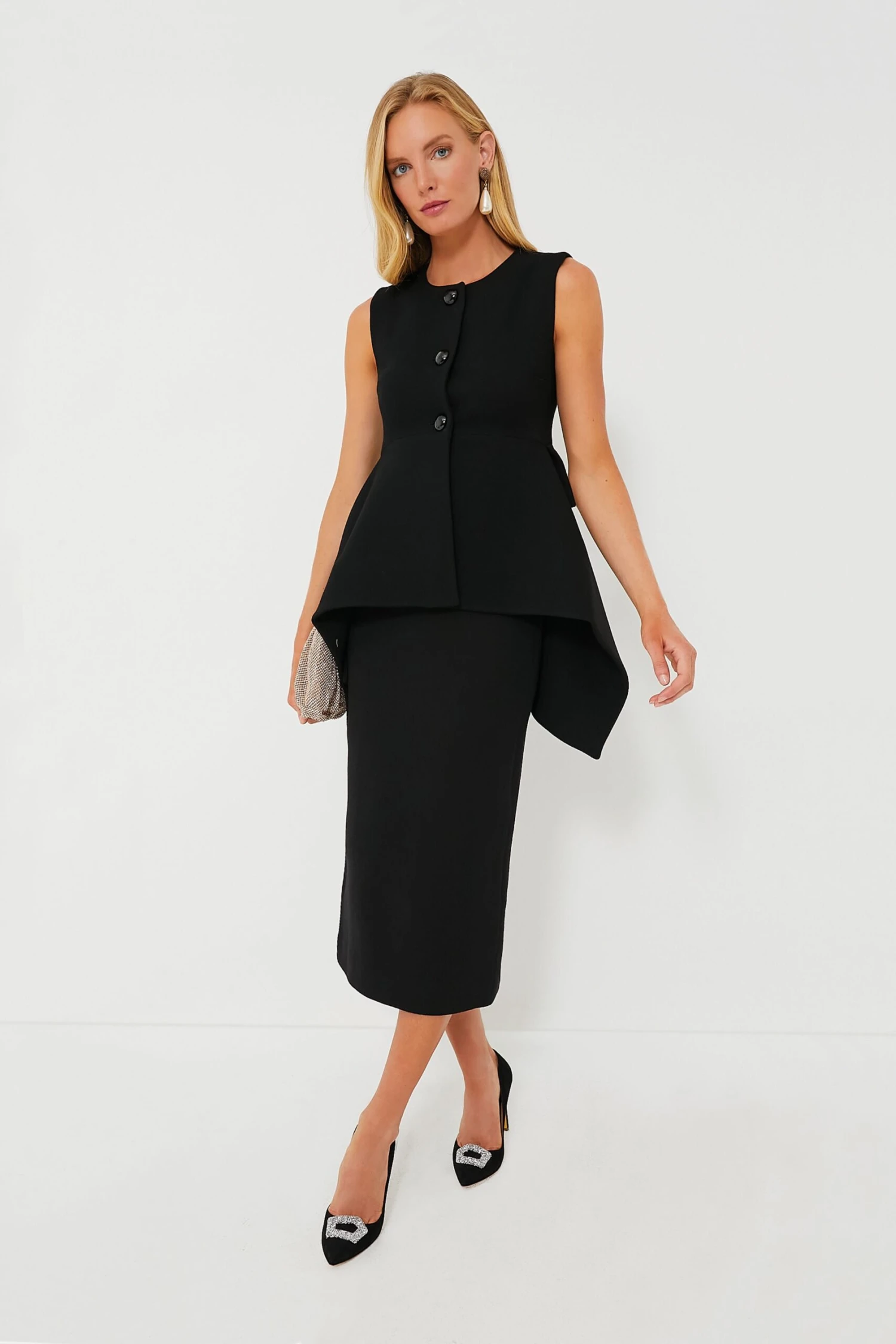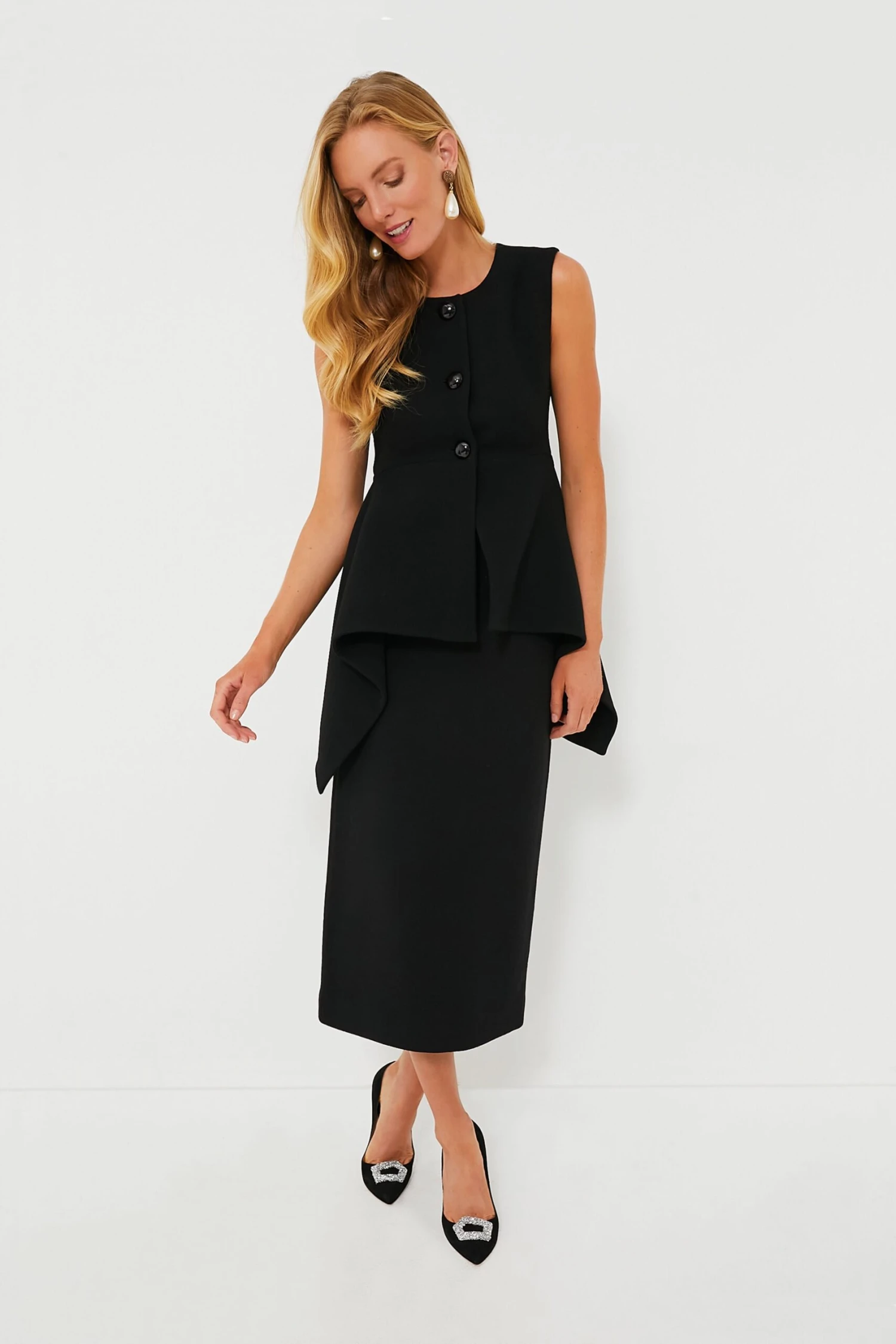 Sophisticated and sleek, the Black Vali Top is designed with 3 oversized buttons and large fabric panels that give you movement while still maintaining a sharp, tailored look. Perfect for any occasion, we love styling it with the matching Black Yasmeen skirt for a polished coordinating look, or pair it with denim and your best heels to hit the dancefloor.Â