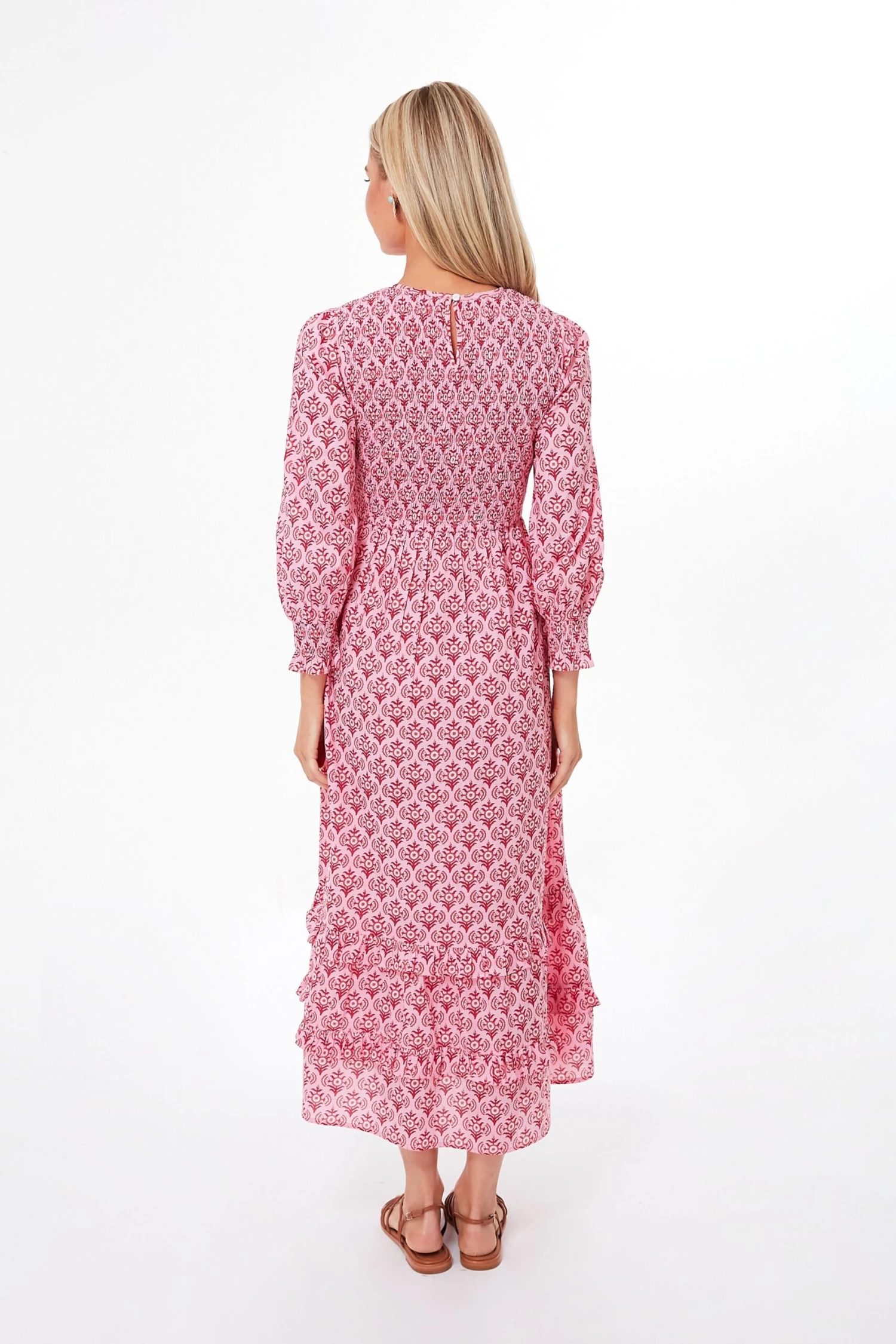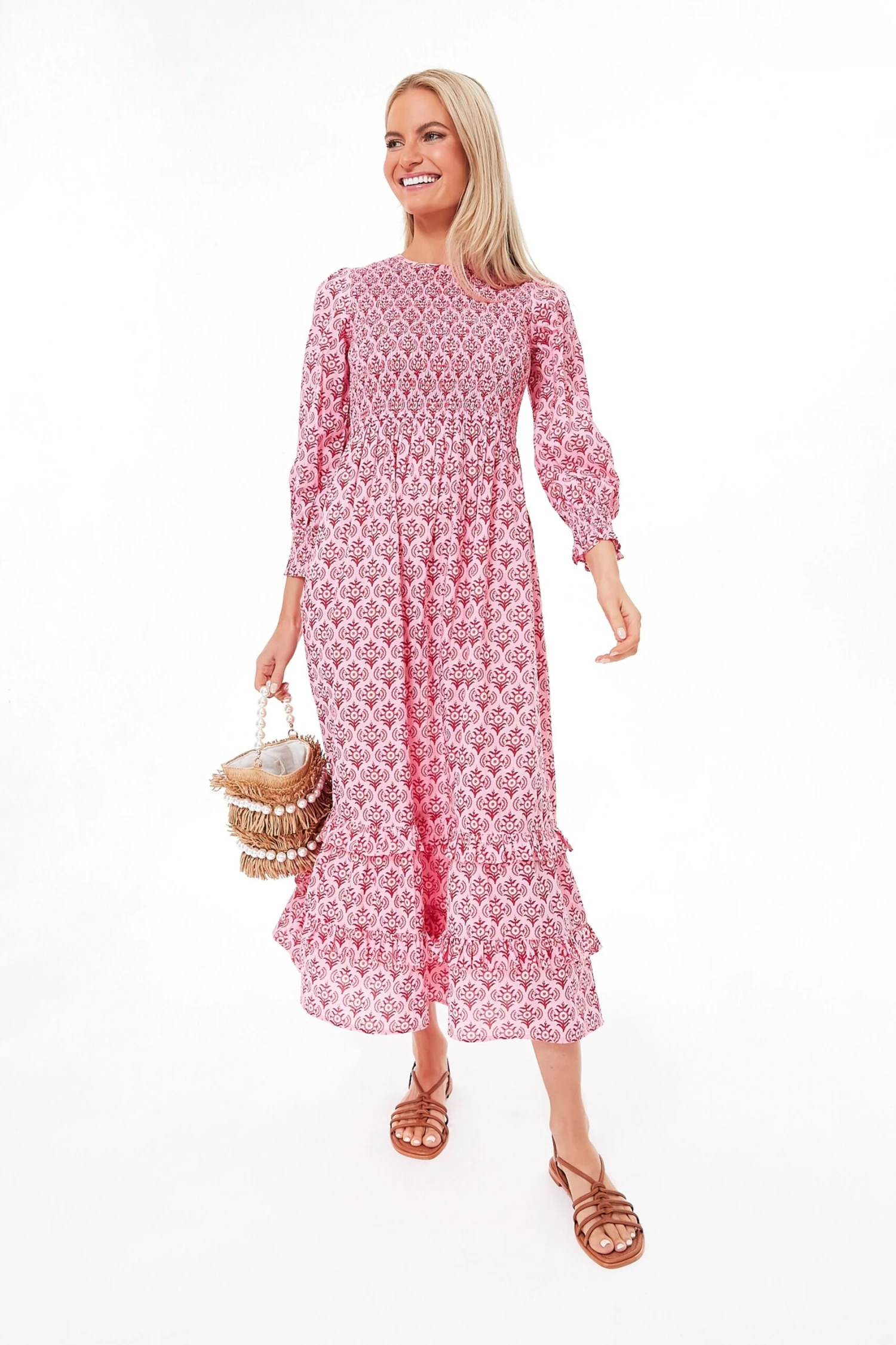 A Tuckernuck exclusive that is a favorite season after season, the Mogul Rose Isabel Dress brings a fresh, rosy pink print to a well-loved silhouette. A classic round neckline, flowing blouson sleeves, and a flattering smocked bodice ensure this midi is as comfortable as it is covetable. When styled with strappy sandals and raffia accessories, you have an ultra-chic look that works for vacations and celebrations, or wear it on a random Tuesday with white sneakers and sunnies.