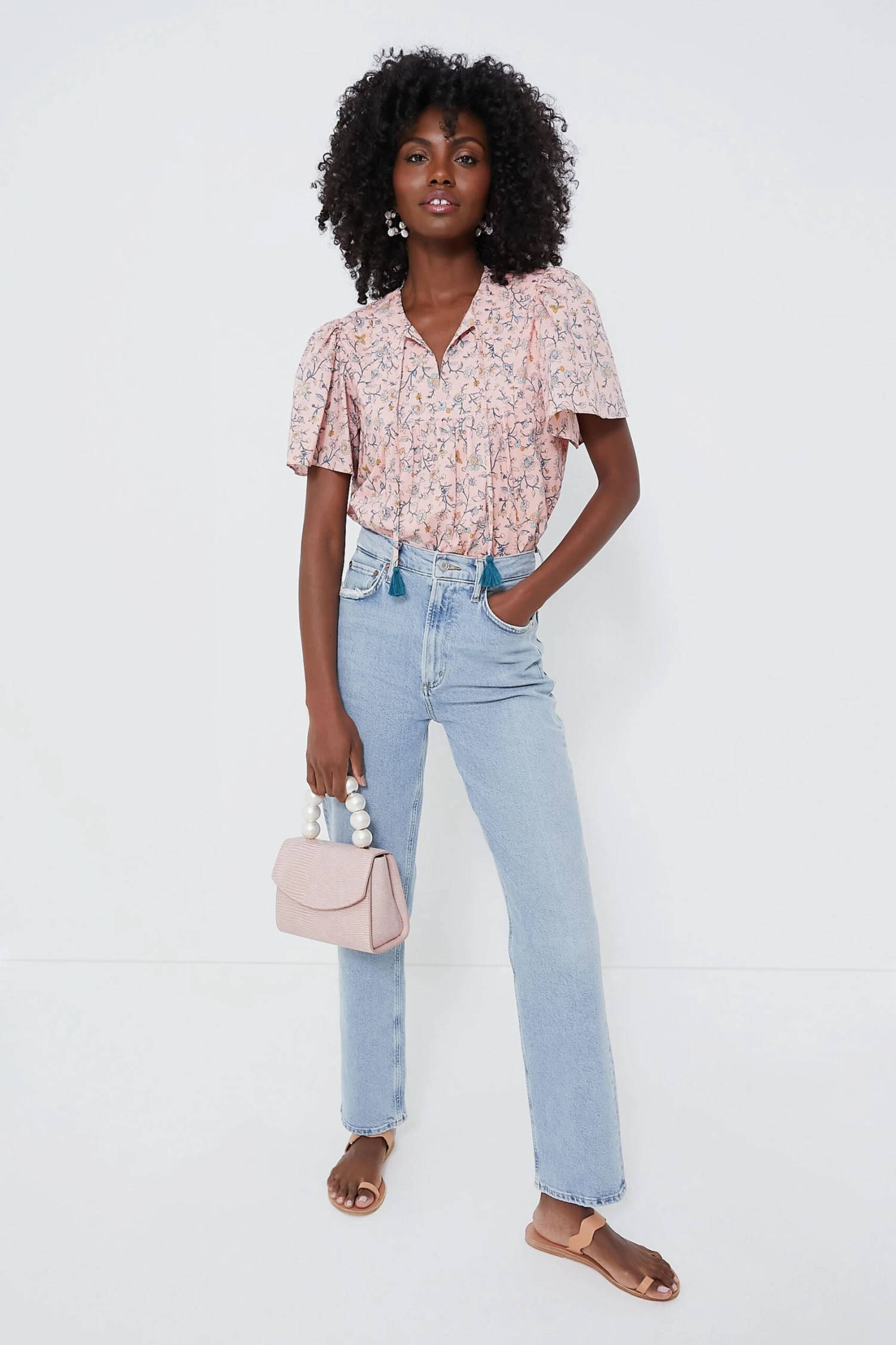 Light or dark denim, cut-offs or mini skirts, the Light Pink Floral Elise Blouse is the throw-on-and-go number of your dreams. Effortlessly add a dash of color and flair to your look with this top featuring flutter sleeves, contrast tassel neckties, and pleats at the bodice. From park picnics to al fresco evenings, there are no shortage of occasions to don this wardrobe winner.