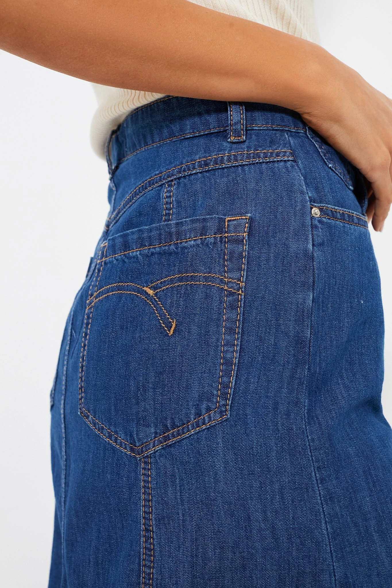 The Blue Jean Edera Skirt is a seasonless style that can be styled hundreds of ways. A flattering fit and flare silhouette that includes vertical seams, this midi is simple with just enough detailing to set it apart. Pair with sweaters, tees, or blouses, and heels, sneakers, or mary janes!