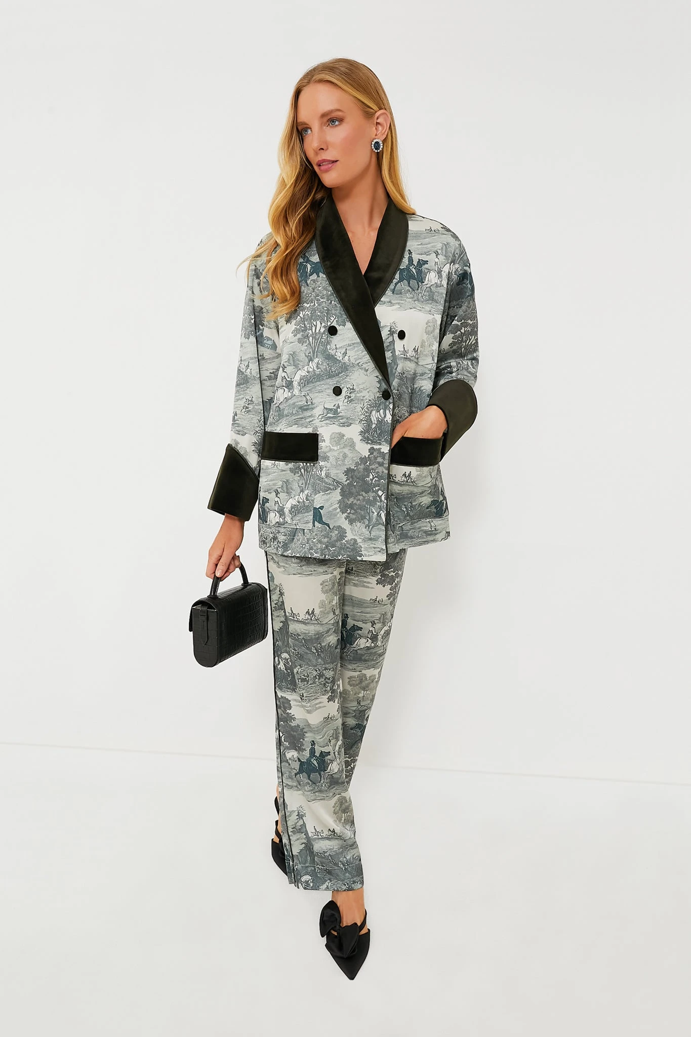 Sure to turn heads wherever you go, the Middleburg Toile Solene Pants are truly one of a kind. Printed with one of our signature prints for the season and trimmed with contrast piping down the side, these luxe bottoms feature a flattering high rise and a silky texture to top off an already fabulous silhouette. Go full maximalist and pair them with the matching smoking jacket, or style with a sleek blouse or a cozy knit for a chic look that’s sure to impress.