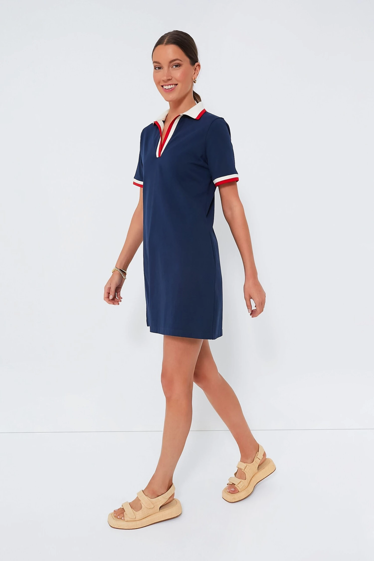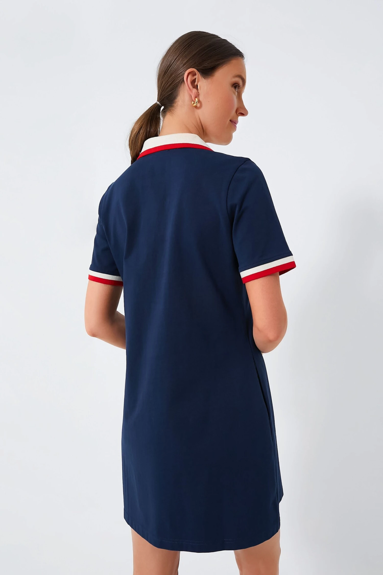 Evoking the style of a timeless and chic tennis dress, the Midnight Navy Hutton Polo Dress looks sharp and sporty while still managing to be soft and feminine. Defined by its contrast rib knit collar that can lay flat or stand on its own and everyone’s favorite detail, pockets, this mini effortlessly polished. Rock it while playing lawn games with friends, and no need to change when victory has been declared and it’s time for evening cocktails.