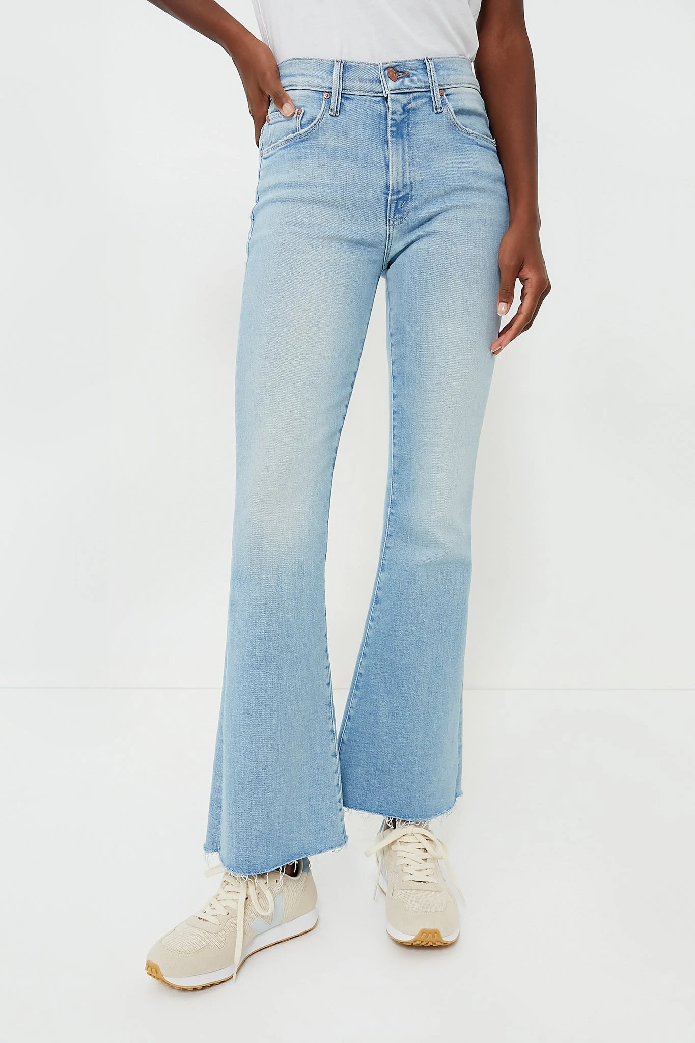 A MOTHER cult-favorite, the California Cruiser The Weekender Fray is a mid rise pant featuring a 31-inch inseam and frayed hem with a bit of flare. Crafted from soft stretch denim in a light blue wash with subtle fading and whiskering, this classic will instantly become your go-to jean. Pair it with sneakers for a day of adventures and swap for heels when you want an elevated look that’s not too over the top.