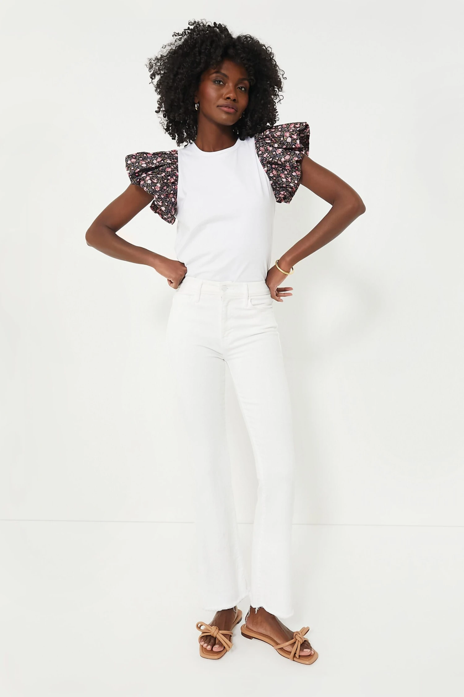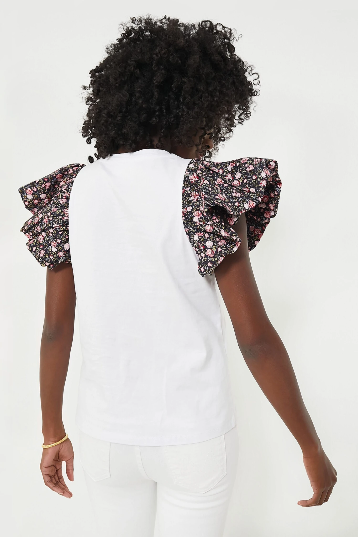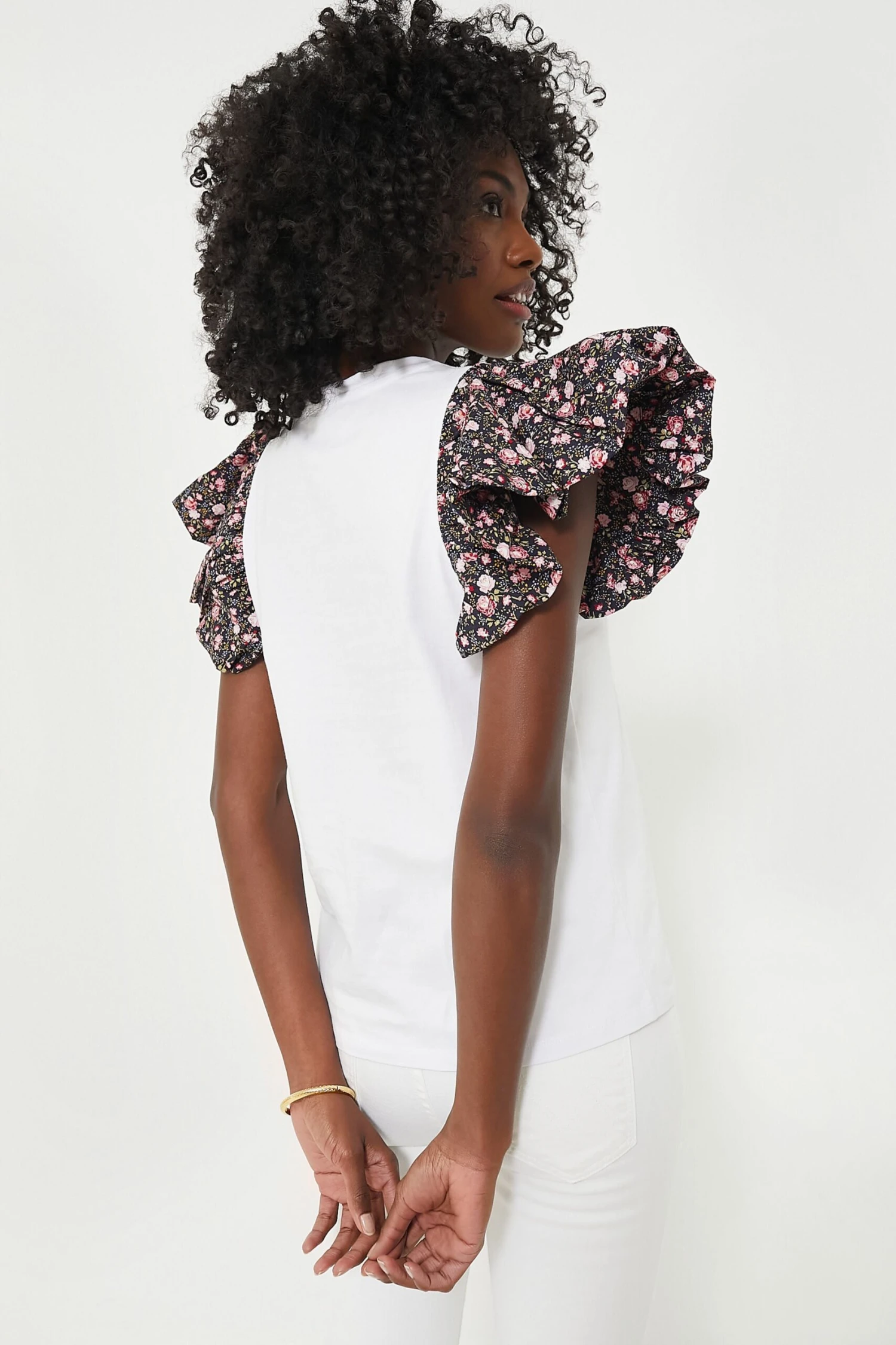 Your favorite silhouette is upgraded in the Navy Floral and White Shelby Tee. With a soft cotton t-shirt body and contrasting flutter sleeves, this top is perfect for days where you want a no-fuss style that is comfortable and easy while also being elevated. Simply pair with denim and ballet flats or shorts and sneakers for an adorable daytime look.