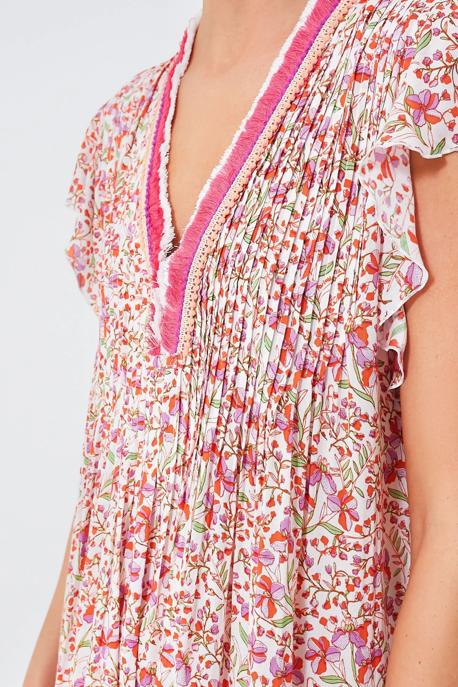 Have you ever seen a silhouette more suited for sunshine than the Pink Jonquille Sasha Dress? We sure haven’t! Beautiful bohemian details such as a contrast fringed neckline, a delicate pintucked bodice, and flutter sleeves create a flirty and light mini that has a ton of character while still feeling easy and care-free. This breezy style works just as well over a swimsuit to head down to the beach as it does with sandals and sunglasses for a coffee run; take it along with you on your next warm weather adventure.