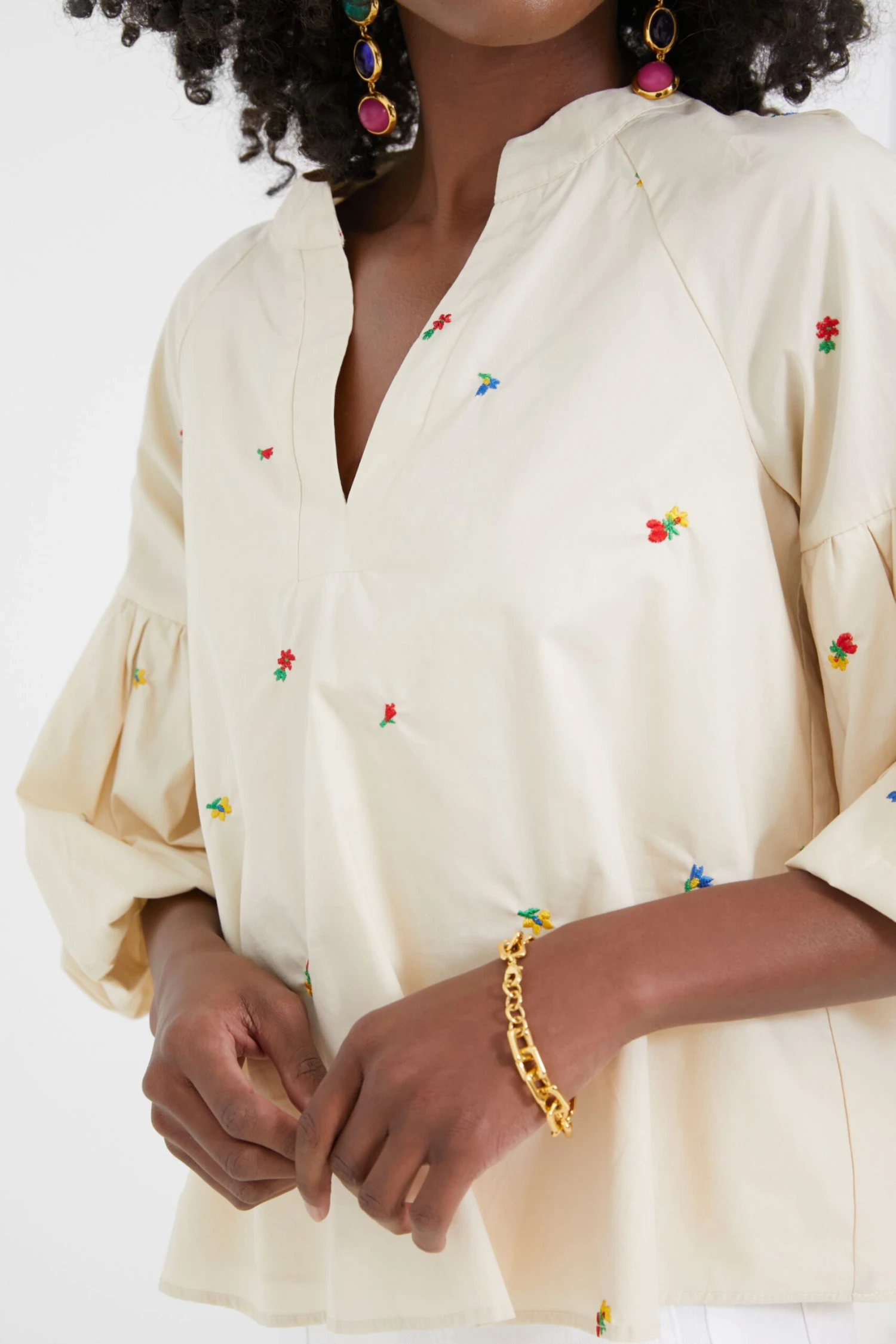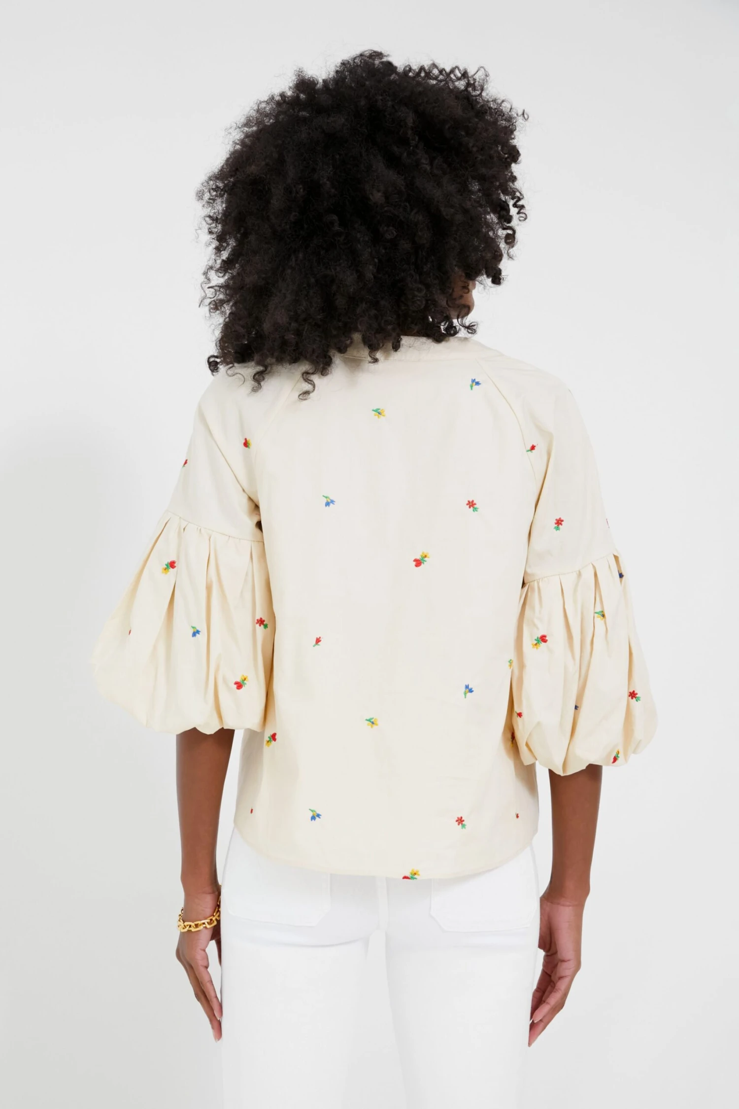 Featuring unique puff bell sleeves and delicate floral embroidery, the Blooms Blouse will be a perfect addition to your wardrobe this season. We’re wearing this crisp cotton top with white denim and a colorful bag for an elevated daytime ensemble. Or pair with cutoffs and flat sandals for a chic yet casual daytime look. Either way, the ways to style this embroidered beauty are endless!