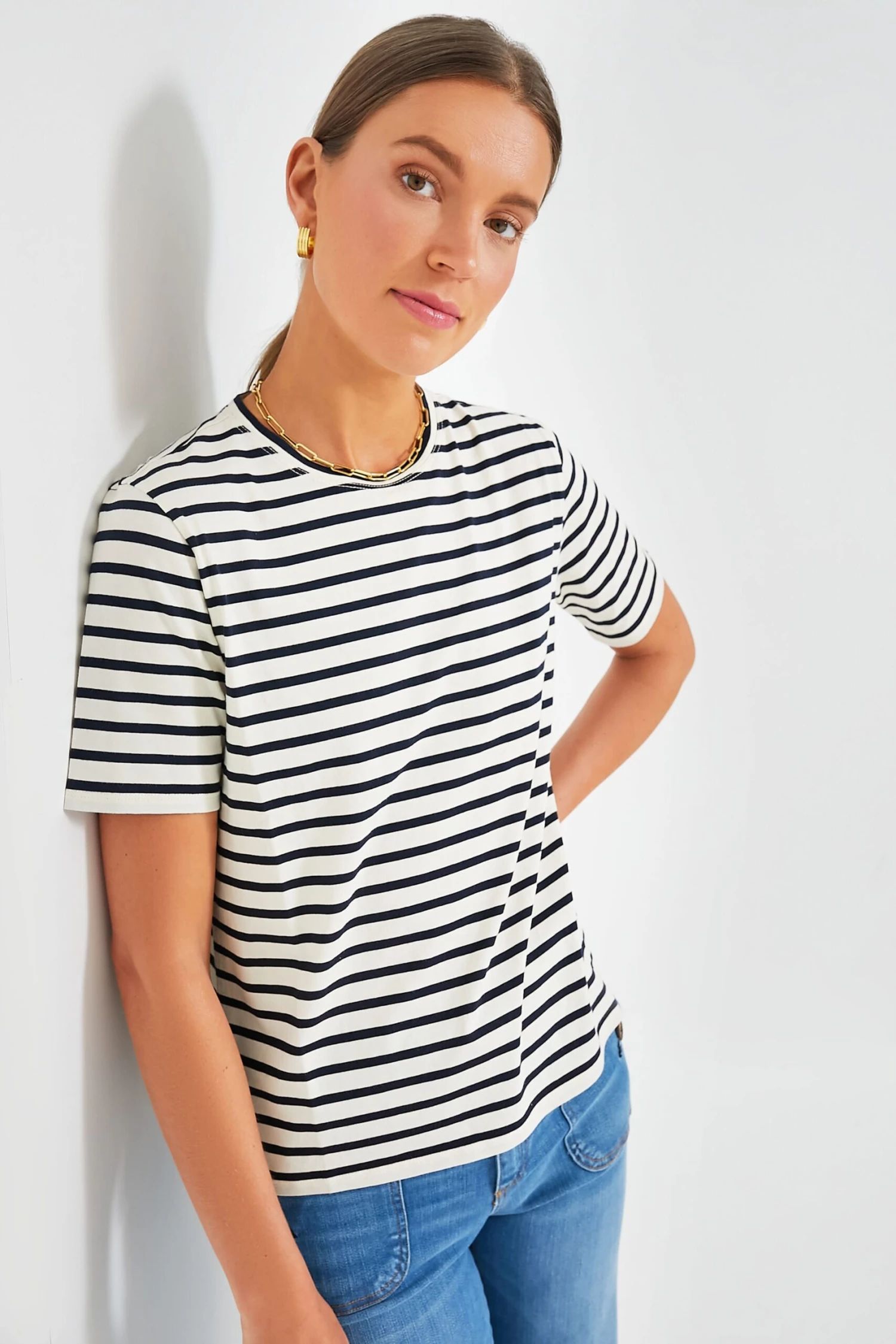 Made of a Portuguese cotton that’s super soft and light, the Cream and Navy Modern is our go-to tee at the moment. With a straight cut that’s so easy to wear, a cropped hem length that is ultra-flattering, and classic nautical stripes, it is the perfect basic silhouette. No matter how you style it, with light or dark wash denim, sandals or sneakers, sunnies or stacked necklaces, it looks great with everything.