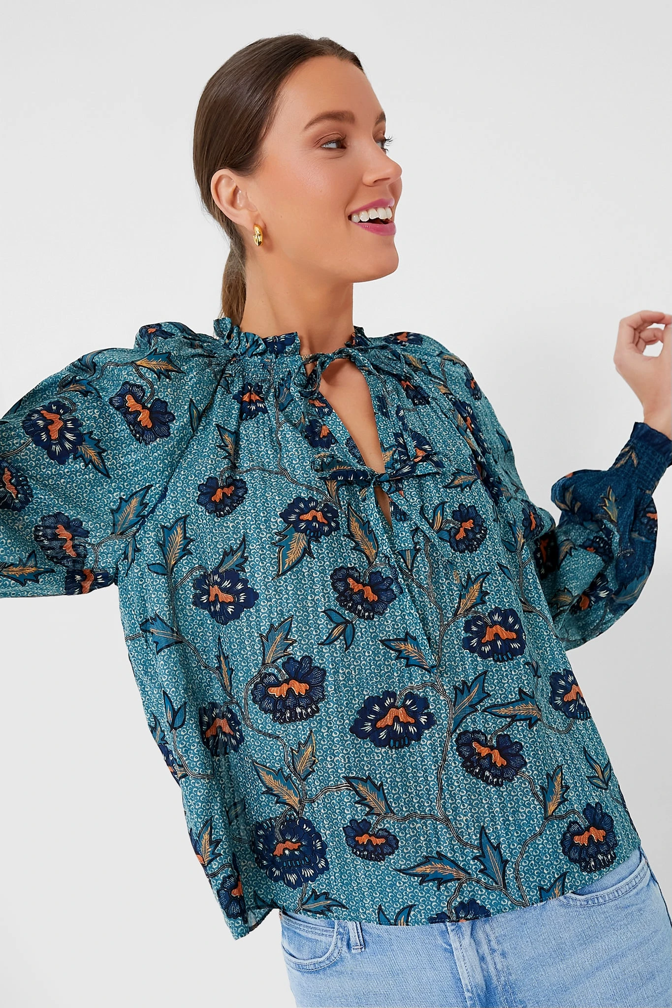 Boho-chic has never looked better than the Cornflower Kaitlyn Blouse. Made from a luxe cotton-viscose blend that is soft yet breezy, and adorned with breathtaking blue botanicals, this relaxed top is sure to wow. Complete with voluminous sleeves and neckties you can fasten or leave undone for a slightly sultry touch, this is a wardrobe winner when paired with denim, shorts, and more.